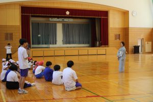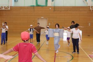 リレー・親子競技の練習後は,体育館に移動し,『あしやす音頭』の全体練習を青山講師の指導のもとに体育館全体に広がって行いました。