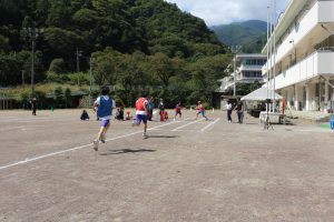 ほとんどの種目が入退場のみが行われるなか,「二人三脚」と「縦割りリレー」については実際に競技を行い,