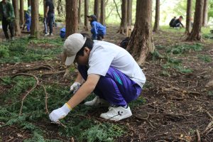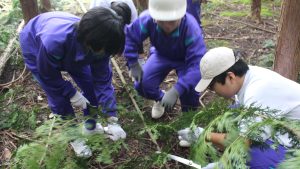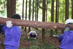 ☆昨日,小中学校合同行事である「ふれあい豊かな森整備事業」が実施されました。小学校校庭南側にある学校林を,芦安ファンクラブの3名の講師の指導のもと,その場で伐採したヒノキの枝打ちや太い幹の運び出し作業を小中学生が分担しておこないました。森のなかは薄暗い日陰でしたが,小中学生が元気な声を出して活動する姿が見られ,とても活気に満ちあふれていました! 大変お疲れさまでした。
