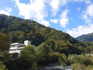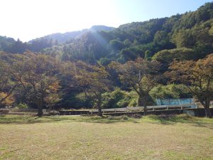 周辺の山肌が少しづつ色付き始めた学校周辺の様子です。2,3日前から急に気温が下がりはじめ,タイミングを合わせように紅葉がすすんだように感じます。
