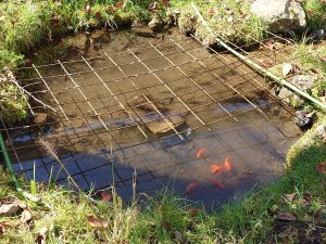こちらは,20年ほど前にホタルを育る目的で整備されたホタル川と小さな池です。現在は金魚が元気に泳いでいて,時々小学生が来て,エサをあげてくれます!