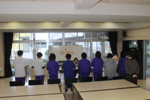 本日白峰祭で発表する合唱に向けて,講師の埴原先生に指導をしていただきました。お腹から声を出して歌うための練習やアドバイスを全校生徒にしていただきました。生徒は音楽を楽しむことを合唱練習を通して肌で感じていたようです!