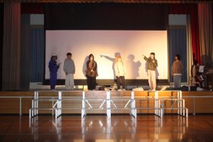 本日,劇の最終リハーサルが行われました。本番さながらの緊張感のある中で,ナレーションから映像,BGM,スポットライトと劇を支える担当もしっかりと加わりキャストとの調整,確認をしました。舞台上でのキャストの表現力がUPしていることに日々の成長を感じ,本番での『姿』が本当に楽しみになってきました。