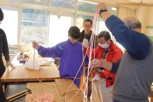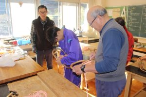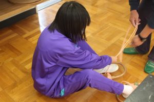 ◇昨日,卒業に向けた輪かんじきづくりが3年生対象に行われました。今回最終段階の作業となり,生徒は芦安FCの清水,森本,西村3名の講師の説明を聞きながら作業を一つずつ進めていきました。海外にも輸出されていた事がある芦安の伝統的な輪かんじきづくりは,とても貴重な体験となったことと思います。完成後には,実際に履いてその良さを味わっていました!