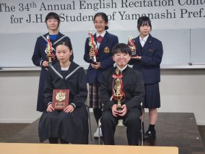 ◇英語暗唱大会の県大会が山梨市で行われました。本校から代表で出場した生徒が見事会長賞をいただきました。様々な活動がある中で,時間を見つけて今回の大会に向けて練習してきたことと思います。本当にお疲れさまでした!今後更に英語に親しみ学びを深めていってほしいと思います。