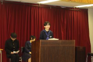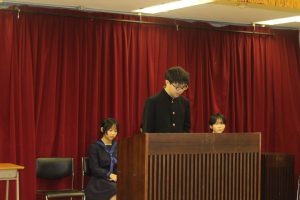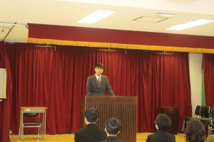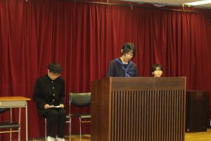 3学期始業式を実施しました。4名の代表生徒からは冬休みの様子,3学期に向けて勉強,進級してからの学習,進路に向けて勉強を頑張りたいなど,堂々と発表し,新生徒会長からは「心構えを」をキーワードに発表がありました。3学期みんなが一つになって「チーム芦安中」で取り組んでいきましょう!