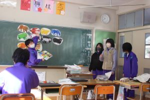 来週行われる、小中合同の読みきかせ活動のリハーサルを、1,2年生で行いました。中学生が中心となって英語の本を題材にピックアップした内容を,小学生にイラストを見せ,質問していきます。今回で2回目とあって役割ごとの練習もスムーズで楽しそうに行っていました。本番当日を楽しみにしています!