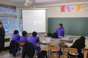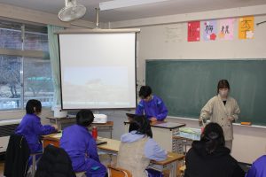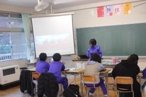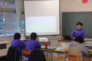 昨日,今年度最後の授業参観・学年部会が行われました。1,2年生は、合同総合学習を行いました。来年度に行われる修学旅行の取組の一環で,事前学習で京都や奈良の歴史・文化・産業などをまとめたものを,一人ひとりがプロジェクターに映し,発表しました。各自のテーマに沿った発表は,どれも興味深い内容のもので,生徒同士も聴き合い更に学びを深めました!3年生は、「惑星や恒星の動き」について「地球・月・太陽・金星」の大きな模型を動かし,教室全体を使って周期について学習をしました。模型を使いながら思考し,対話的な活動が多くみられ,とても印象深い授業でした。